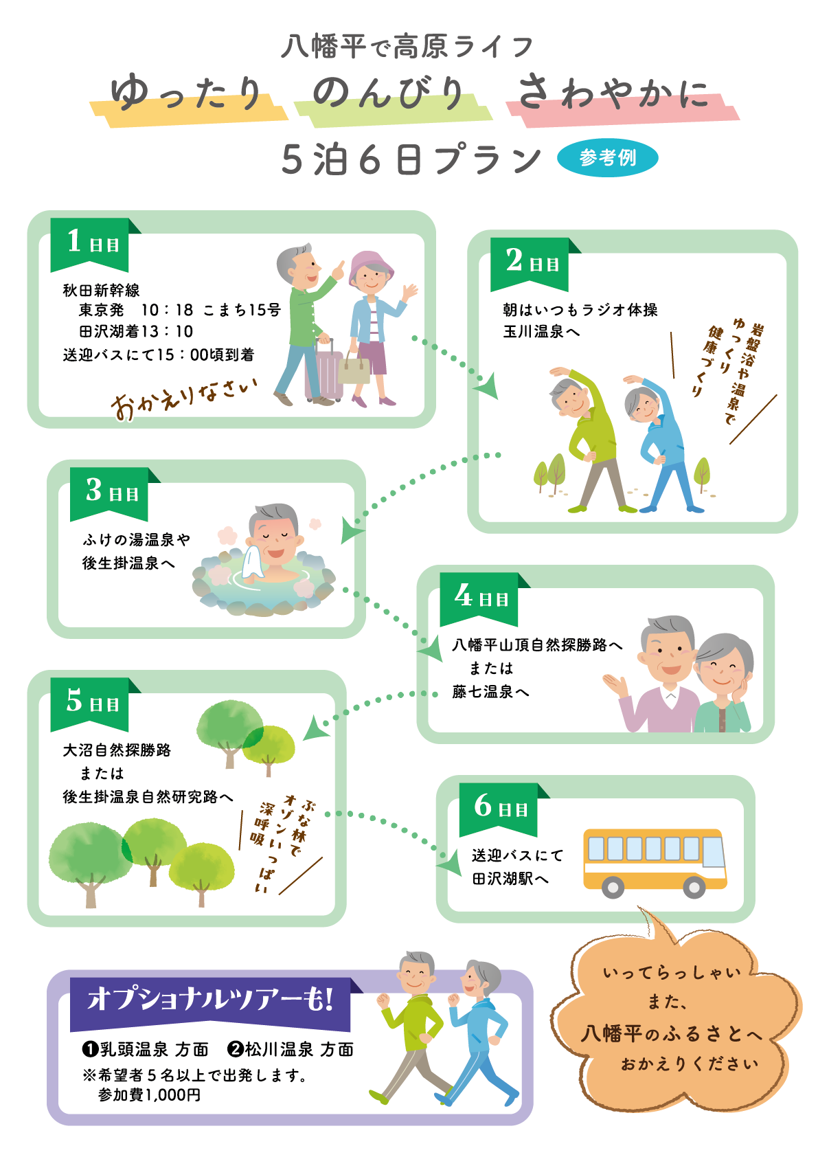 今年で2度目です。おいしい空気と食事、いつでも入れる温泉で毎日充実していました。八幡平や大沼、後生掛温泉…素晴らしい!ありがとうございます。女将さんが顔を見せてくれるようになるとなおいいな。皆様お身体に気をつけてお過ごし下さい。又来たいです。